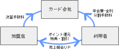 | クレジットカード基礎知識(2)クレジットカードの仕組みから内容まで、基本的な部分を解説いたします。・クレジットカードとは? クレジットカードのシステムクレジットカードのシステムは非常によくできており、利用者、加盟店、クレジットカード会社の全てにメリットがあります。 ■利用者 ・サイフに現金がない場合でも、後払いで商品を購入することができる ・高額商品を買う場合などは分割払いなど、支払方法が選べる ・優待特典や、ポイント還元などのメリットがある ・カードで買った商品が盗難にああったりや壊れた場合、盗難保険や損害補償制度がある ■加盟店 ・手持ちの現金がないお客様にも商品を販売できるので、機会損失を防げる ・レジでの精算が簡単で、接客時間の短縮、おつりや売上の誤差が少なくできる ・自社カードや提携カードを発行することで、リピーター確保・顧客の囲い込みができる ■クレジットカード会社 ・カードの年会費や、分割払いやキャッシングの利用者からの手数料収入がある ・加盟店から販売金額の約1~10%程度の売上手数料収入や加盟料の収入がある クレジットカード利用の流れ ・利用者はレジでカードを渡します。 ↓ ・加盟店はレジでカード会社のコンピューターとリアルタイムで審査・承認を行います。 (カードが盗難されたものではないか、今月のカード利用限度額は大丈夫か、など) ↓ ・カードの利用が承認されると、利用明細が発行されるのでサインをして、利用明細の控えを受取る。 たったそれだけで、現金なしで後払いで商品を購入することができるのです。 (クレジットカードの利用方法の流れの詳細は、クレジットカード初めて講座を参照) ※一部の店舗や条件によっては、サイン無しでの購入ができるカード・加盟店があります。 このとき、商品の代金はカード会社が肩代わりして販売店に支払ってくれます。 利用者は、毎月決められた締日までの1ヶ月分の代金を、指定された引落とし日に、銀行の口座から自動で引落されます。(または、振込み・コンビニ決算などで支払います。) 尚、銀行の残高が足らなかったり、支払いが遅れるとクレジットカードの利用が停止され、場合によってはカードを回収され、一定期間クレジットカードの発行ができなくなります。 クレジットカードは、利用者との信用で成り立っているものであり、その信用は一度崩れるとなかなか取り戻せません。支払いだけは遅れることなくきっちり行なうことが大切です。 これらの利用料金の滞納や延滞の情報は、各クレジットカード会社同士で共有されていますので、1つの会社で信用を落すと、他の全てのカード会社との信用も落ちることになってしまいます。 クレジットカードの種類クレジットカードには、JCB・VISA・master・AMEX・Dinersなど海外にあるカード会社の発行する「国際ブランド」と、AEON・NICOS・OMC・セゾン・オリコ・JACCS・UFJなどの日本国内のカード会社が発行する「国内ブランド」の大きく分けると2種類があります。